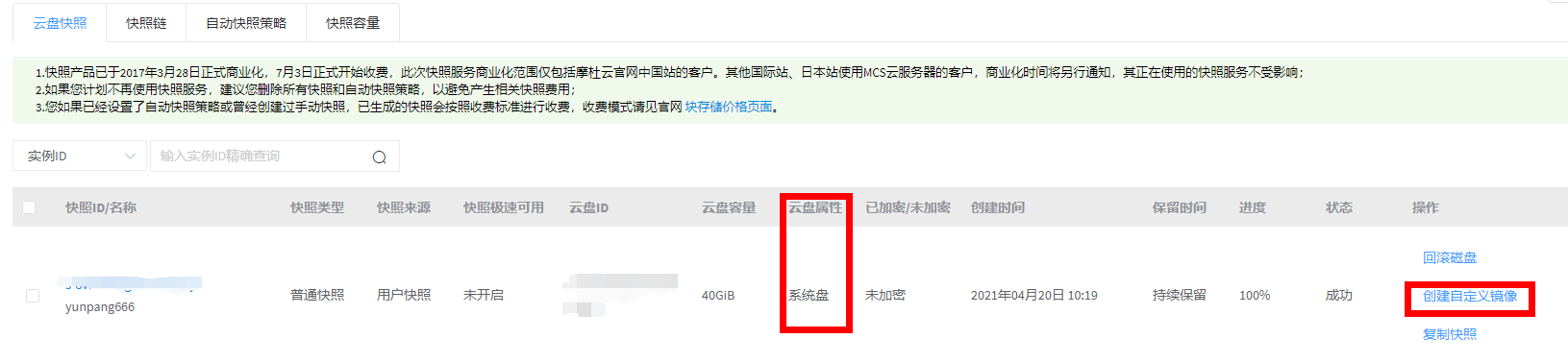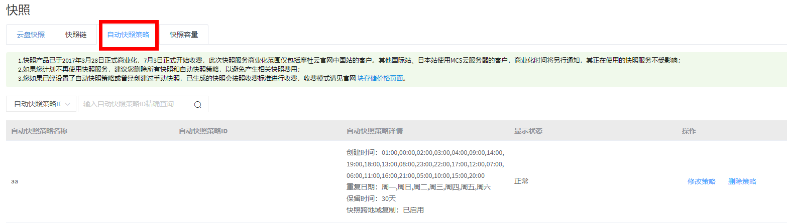 2. 您所订购的快照服务到期或您的快照服务发生欠费 ,您应该及时续费,
