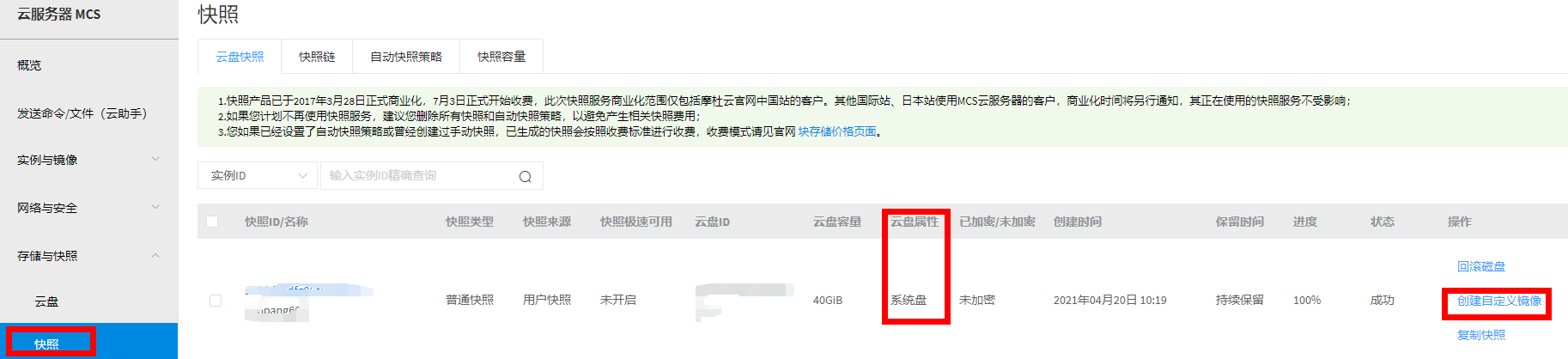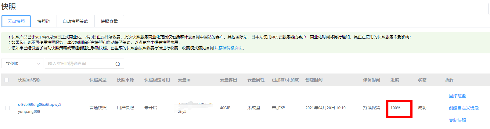 2021-04-06 | 部分 | 创建多个云盘快照(实例快照) |
