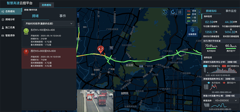 通过摄像头实时监测识别路网拥堵状态及路网事件,快速了解路网运行全貌;