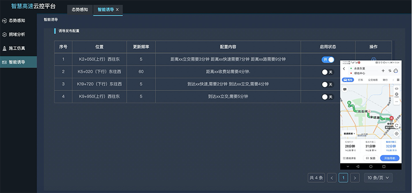 通过智能诱导可快速将路况信息通过情报板及高德地图等渠道传递给司乘人员。