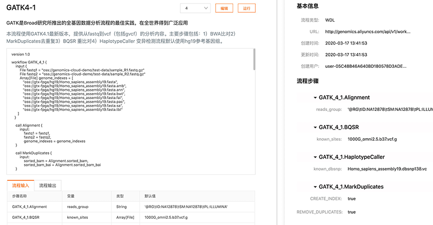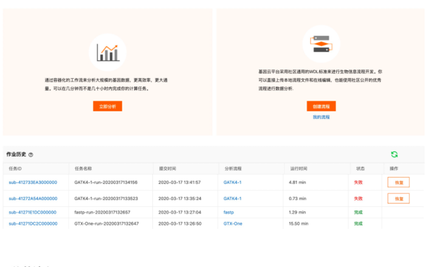 (Workflow Description Language, WDL),来自定义生信流程,或者使用摩杜云提供的加速分析软件,直接进行基因数据分析,