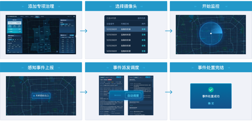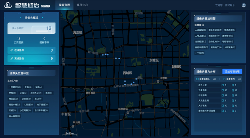 领域十多种场景的智能识别能力与多种算力调度规则,可提高城治的各种常见问题和周期性问题的监控治理能力。同时通过在多个