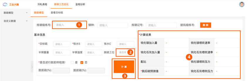 1.在(1)处输入炼钢熔炼号;