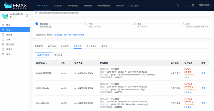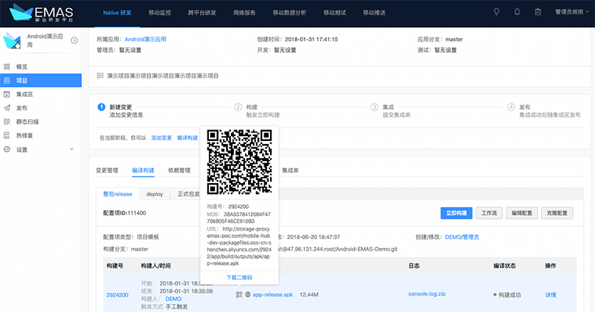 1)在 “移动研发平台EMAS”新建一个项目,创建模块的变更,写完代码后,构建出jar包并发布到maven仓库;
