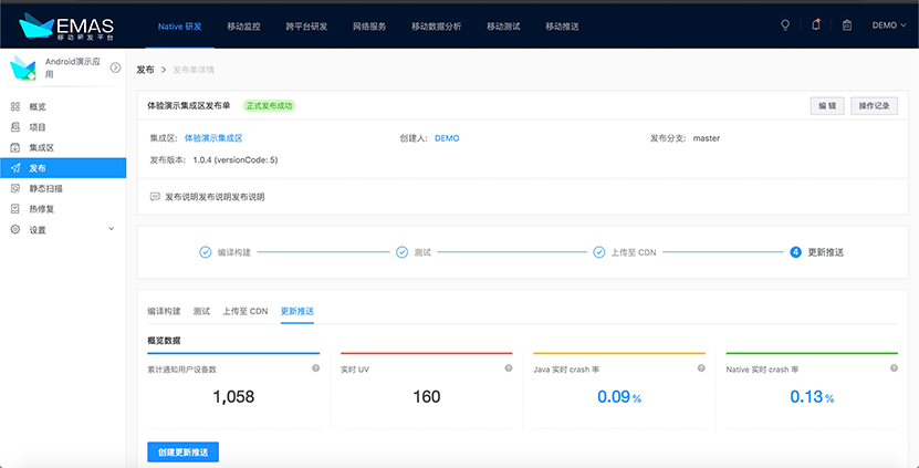 2)过程中结合crash数据、用户舆情反馈等,有问题可及时止血,无问题则继续放量,最后全量推送新版本。