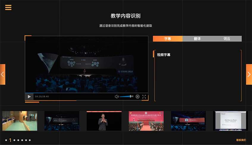 可实现直播、录播的中文字幕同声传译,提供词云等功能;并且基于语音识别还能实现课程内容检索、重点内容时间线等功能。