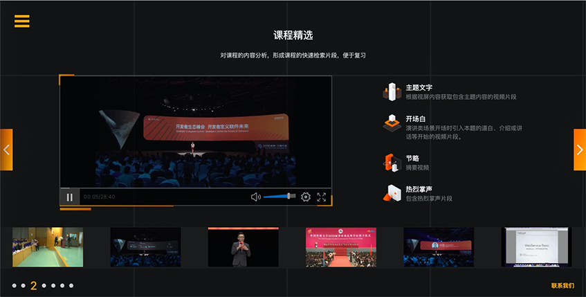 通过对视频课程内容解析,提炼课程中的关键场景,如开场、课程节选、互动片段等。